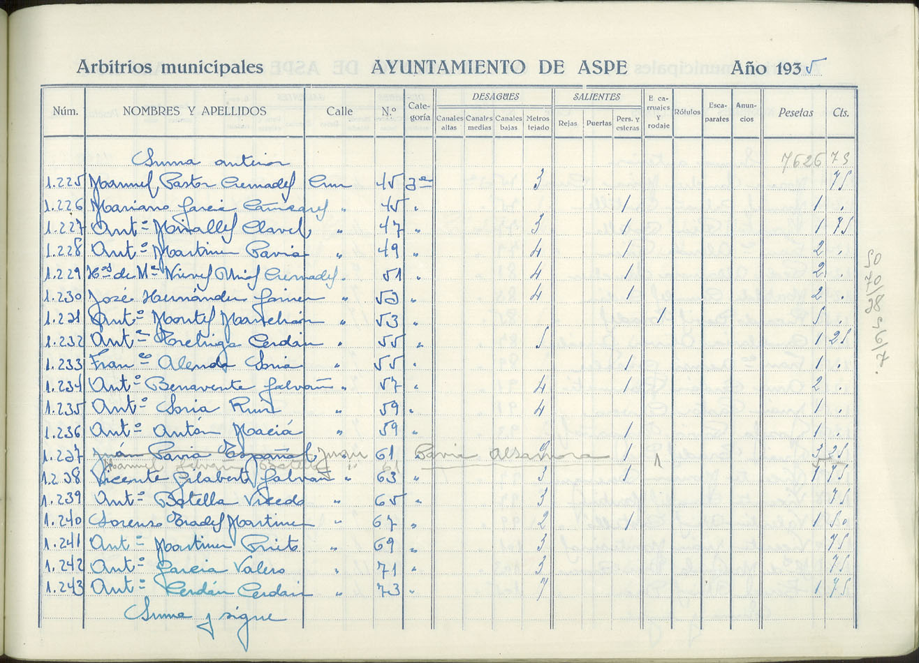 Padrón de personas sujetas al pago de arbitrios municipales, 1935