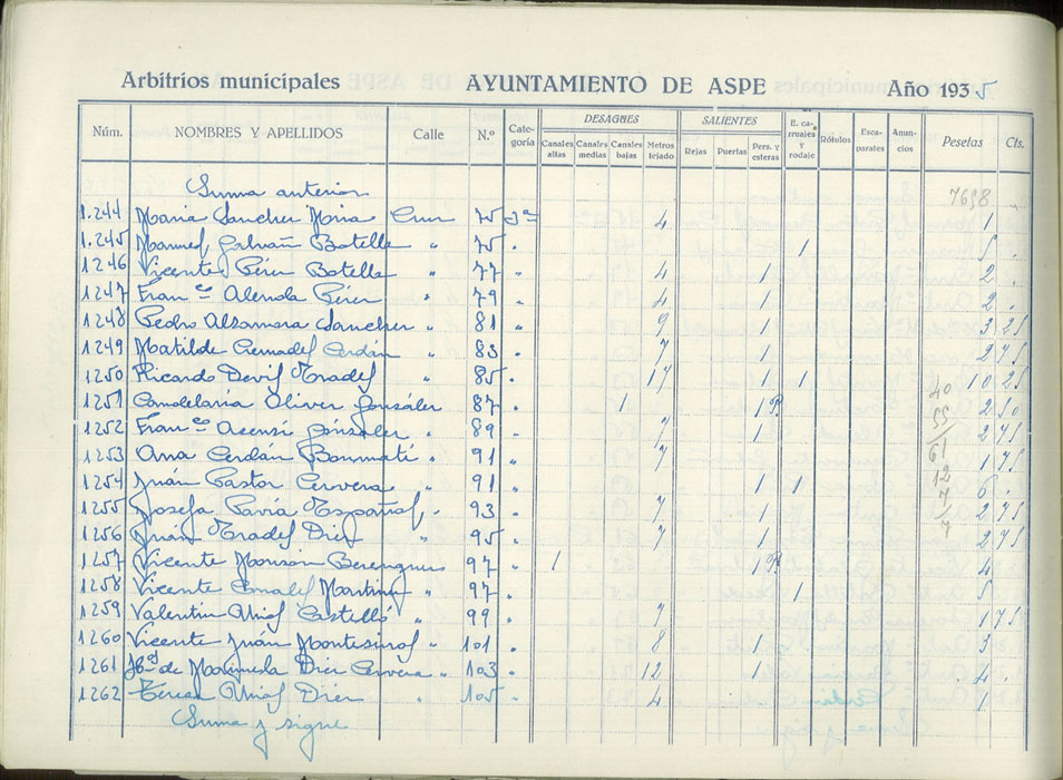 Padrón de personas sujetas al pago de arbitrios municipales, 1935