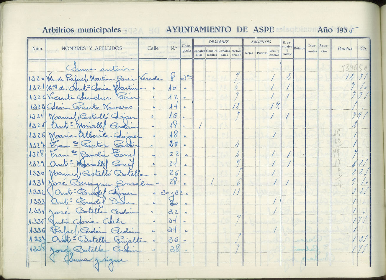 Padrón de personas sujetas al pago de arbitrios municipales, 1935