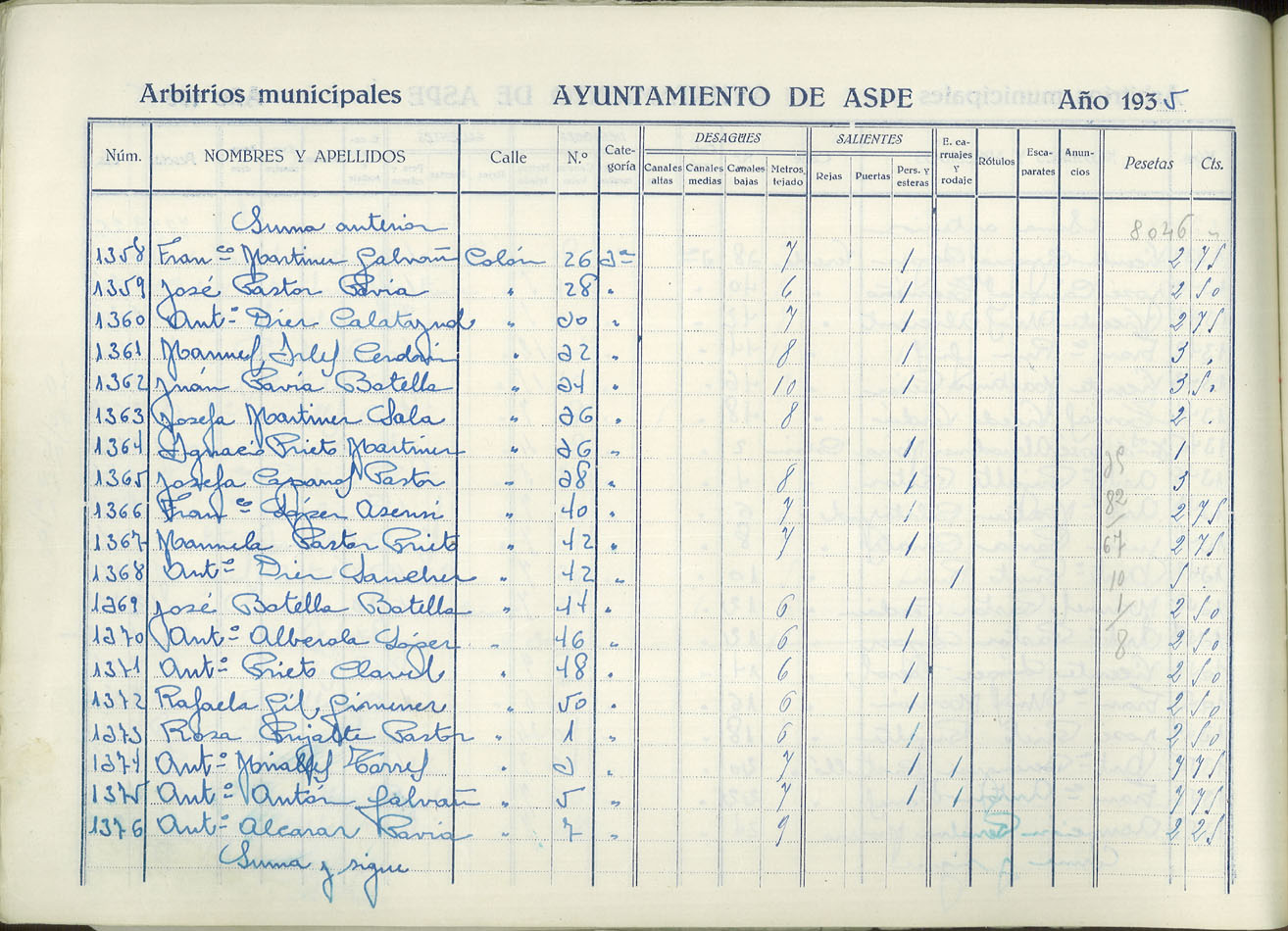 Padrón de personas sujetas al pago de arbitrios municipales, 1935