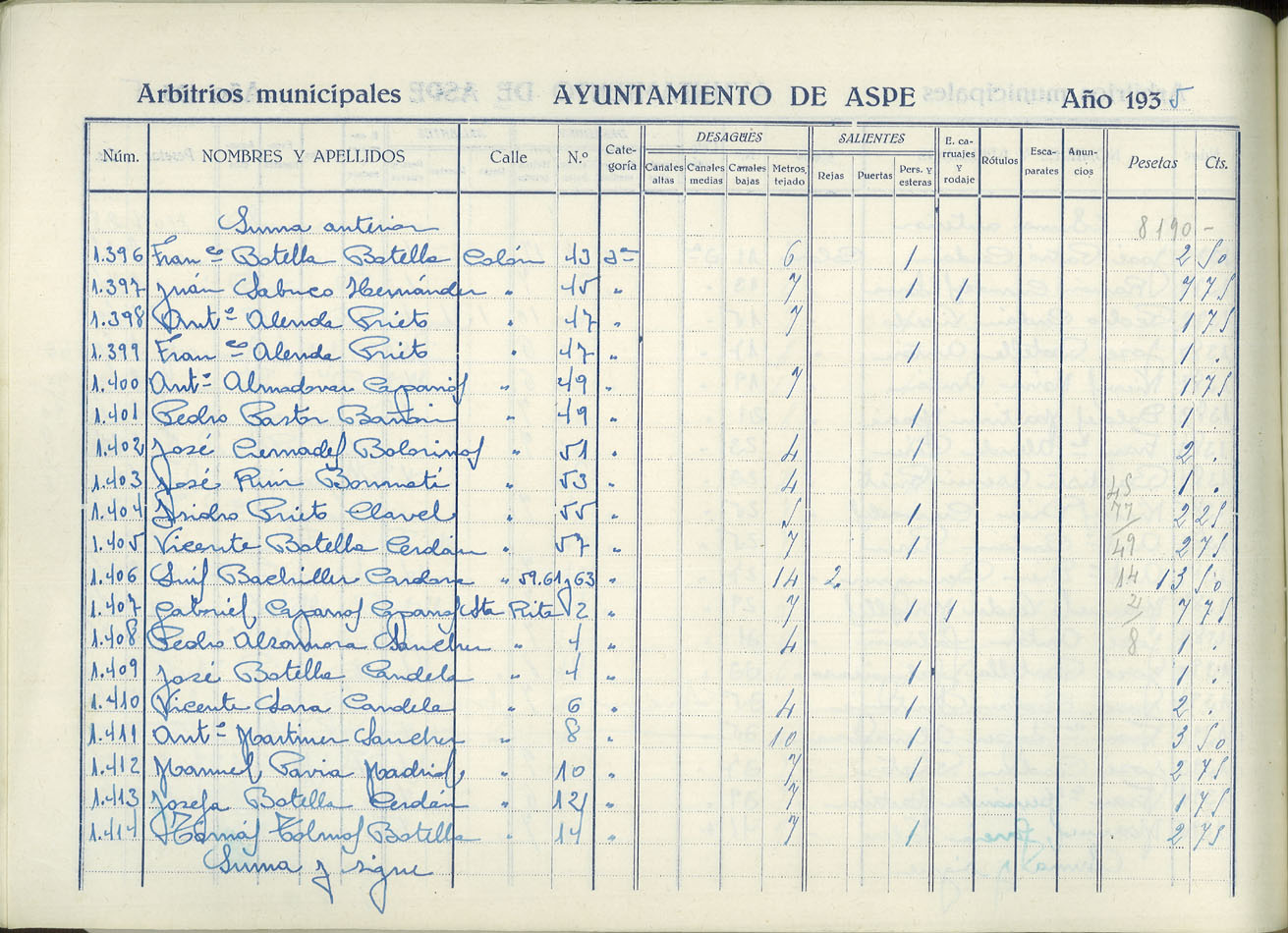 Padrón de personas sujetas al pago de arbitrios municipales, 1935