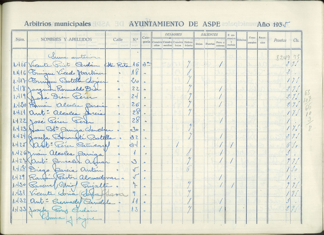 Padrón de personas sujetas al pago de arbitrios municipales, 1935