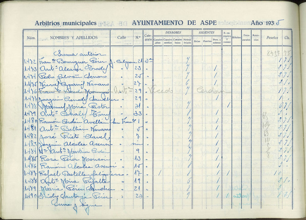 Padrón de personas sujetas al pago de arbitrios municipales, 1935
