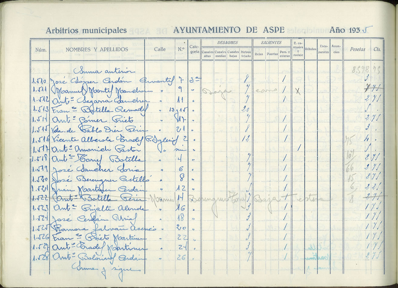 Padrón de personas sujetas al pago de arbitrios municipales, 1935