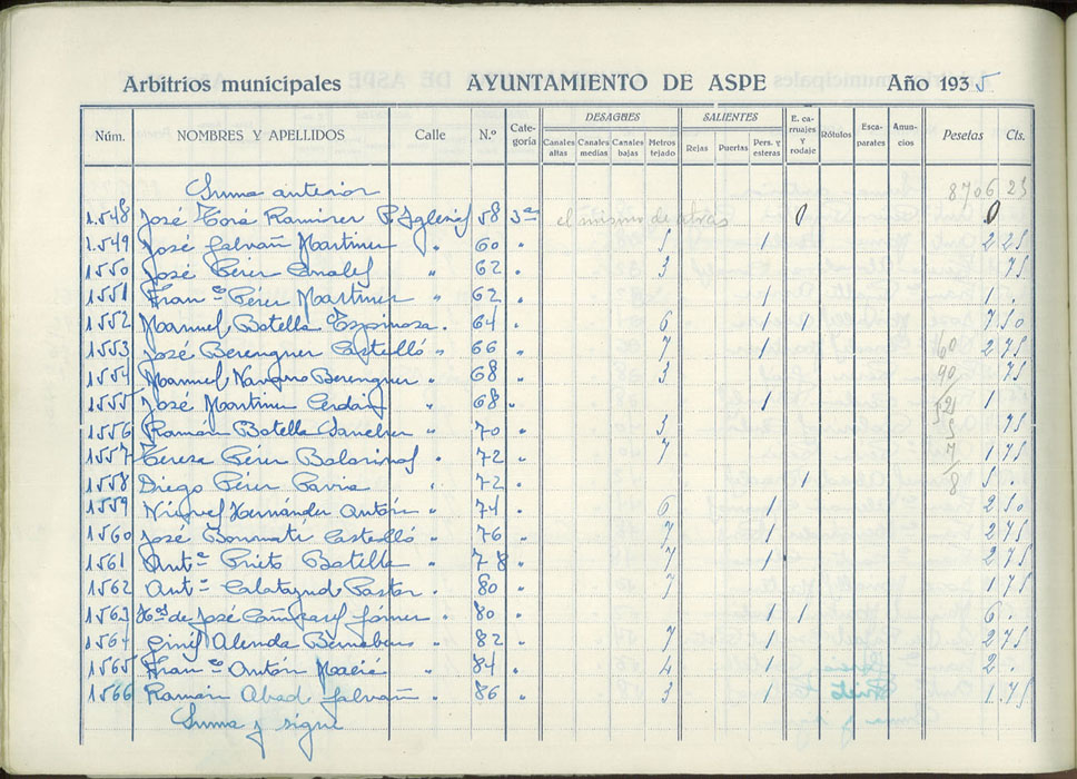 Padrón de personas sujetas al pago de arbitrios municipales, 1935