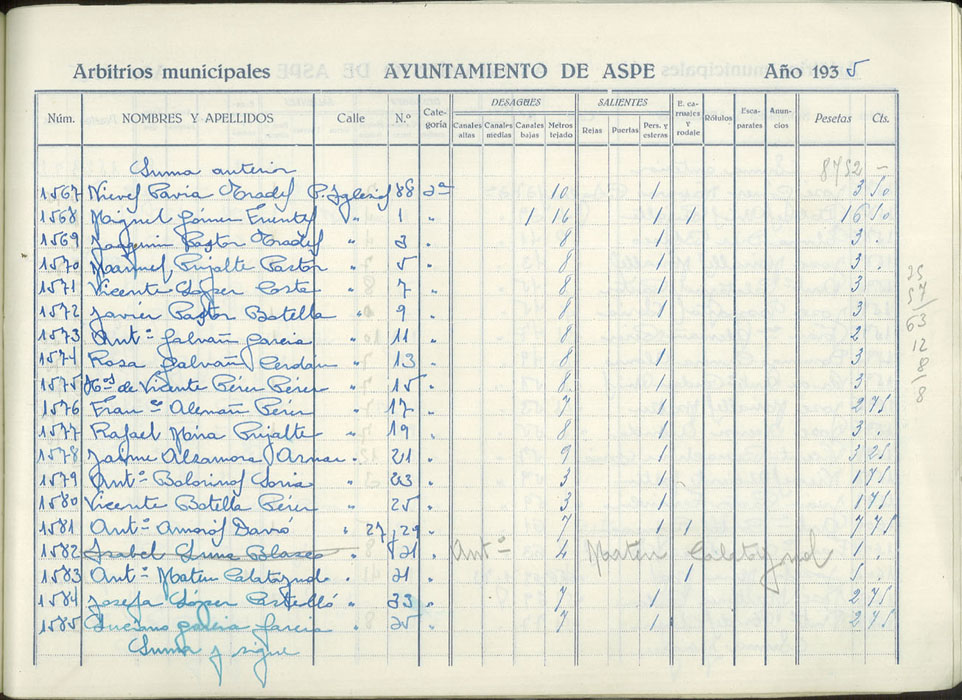 Padrón de personas sujetas al pago de arbitrios municipales, 1935
