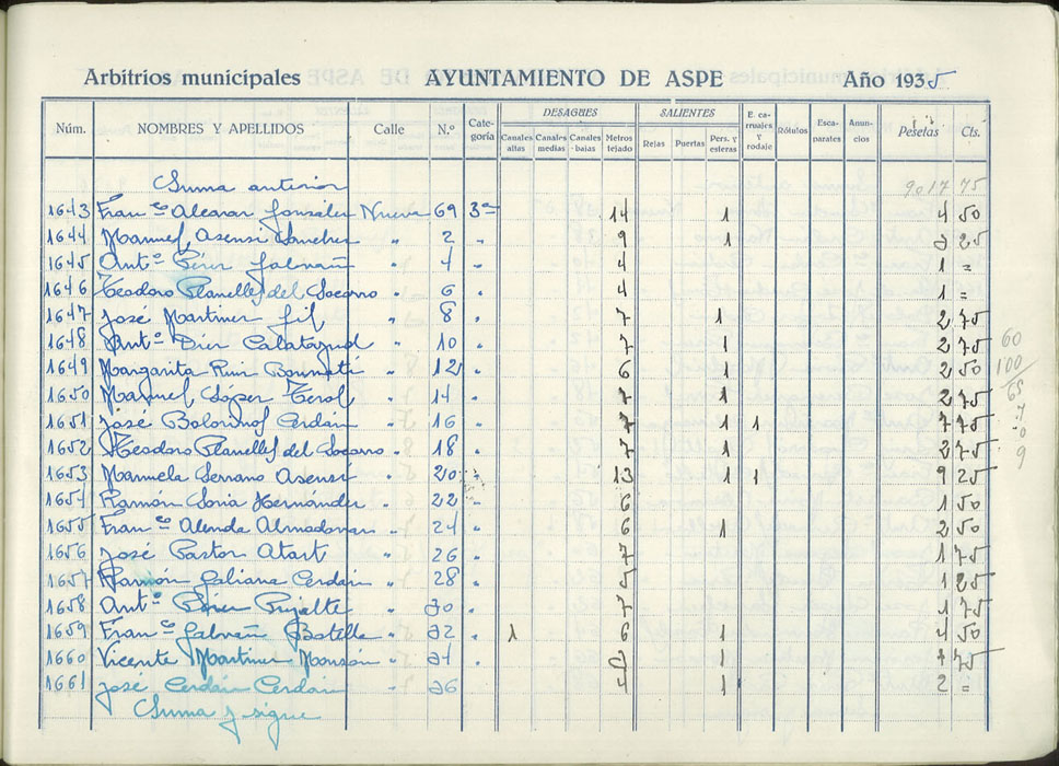 Padrón de personas sujetas al pago de arbitrios municipales, 1935