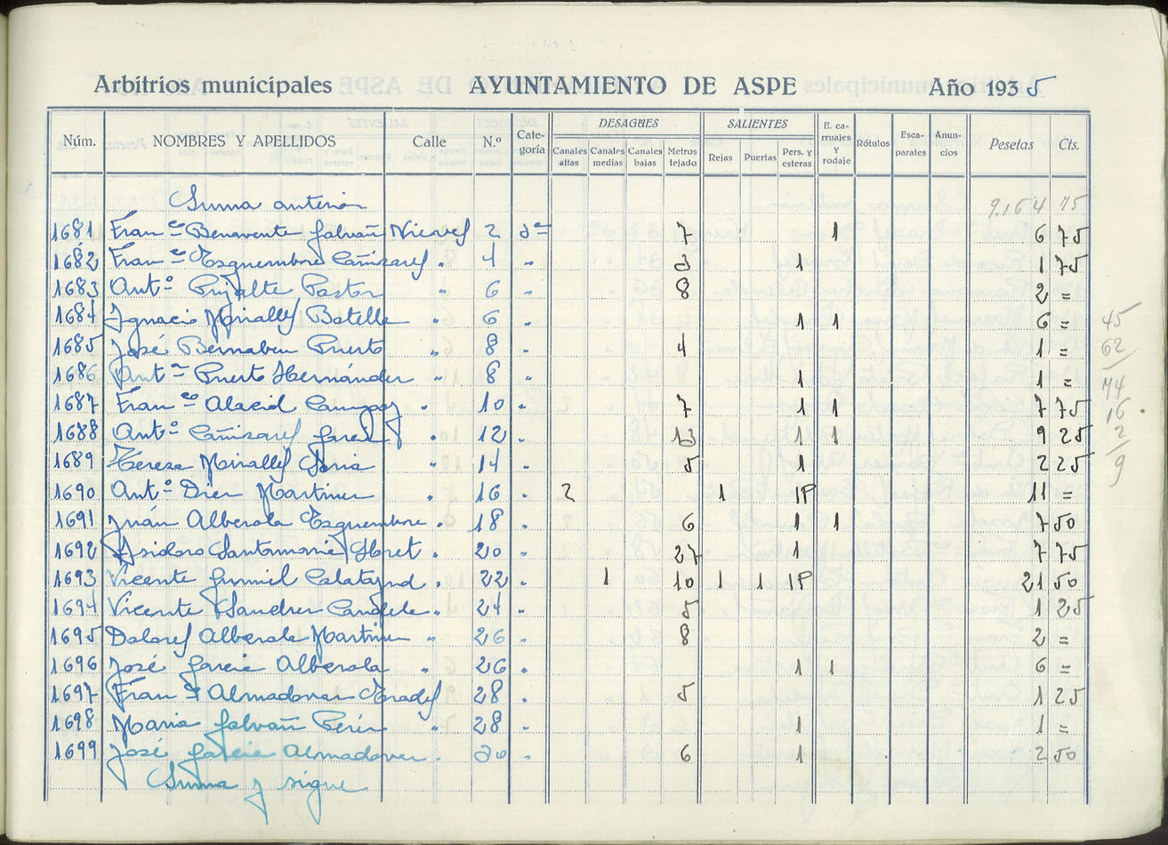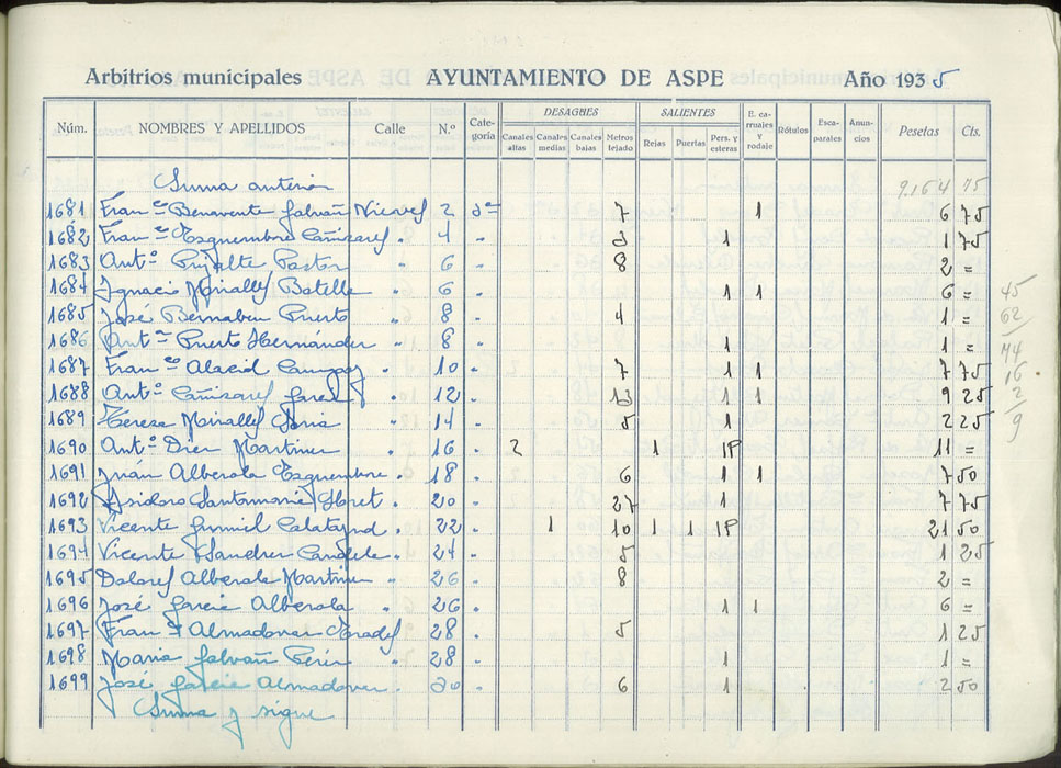 Padrón de personas sujetas al pago de arbitrios municipales, 1935