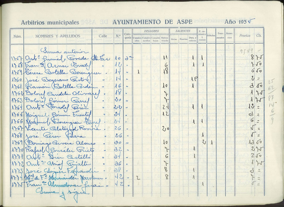 Padrón de personas sujetas al pago de arbitrios municipales, 1935