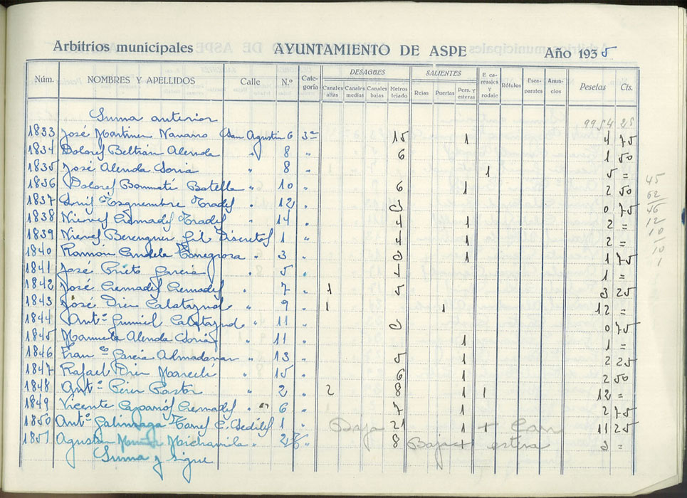 Padrón de personas sujetas al pago de arbitrios municipales, 1935