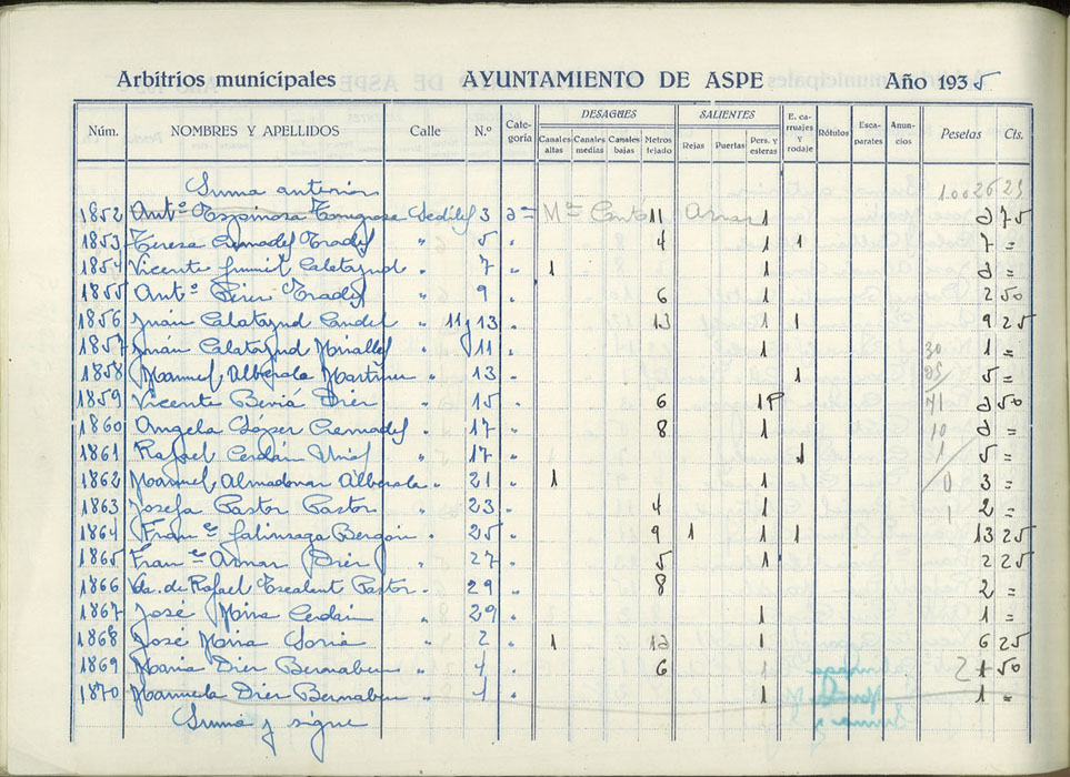 Padrón de personas sujetas al pago de arbitrios municipales, 1935
