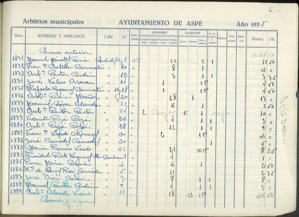 Padrón de personas sujetas al pago de arbitrios municipales, 1935