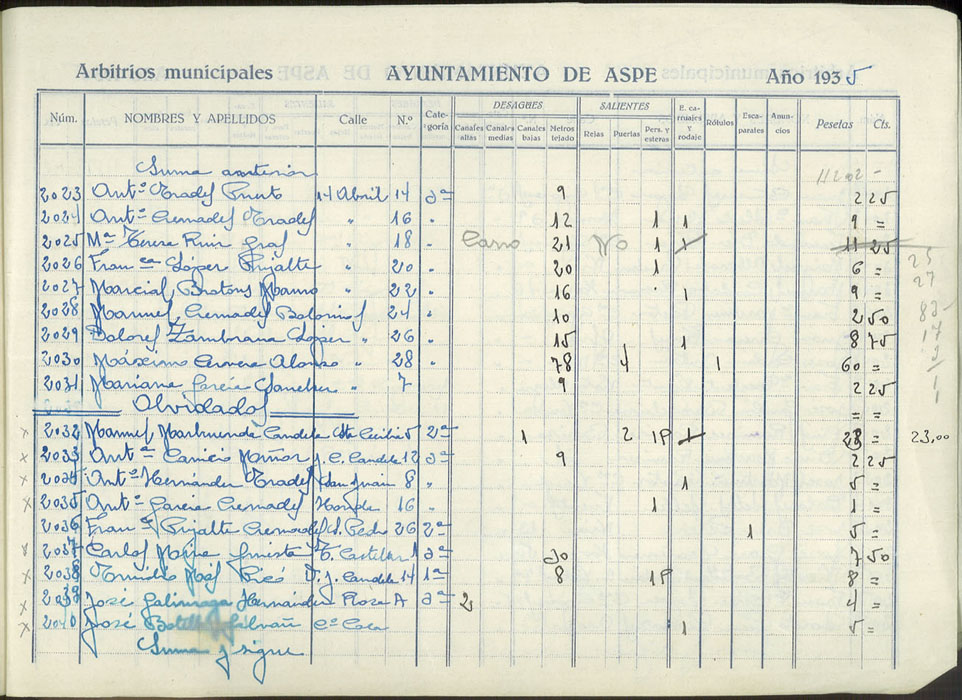 Padrón de personas sujetas al pago de arbitrios municipales, 1935