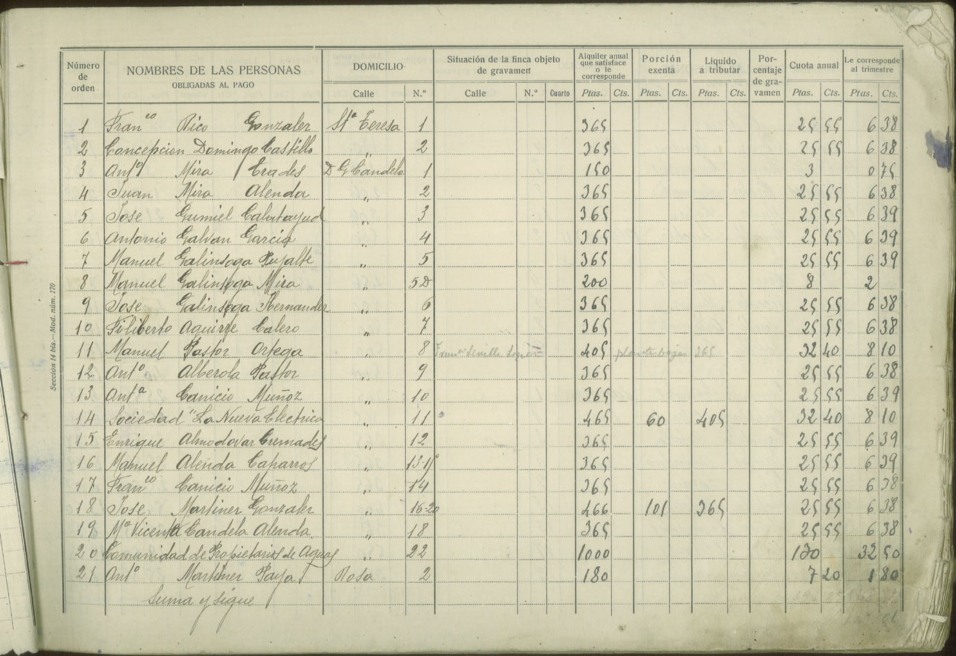 Padrón de personas sujetas al pago de arbitrio de inquilinato, 1927