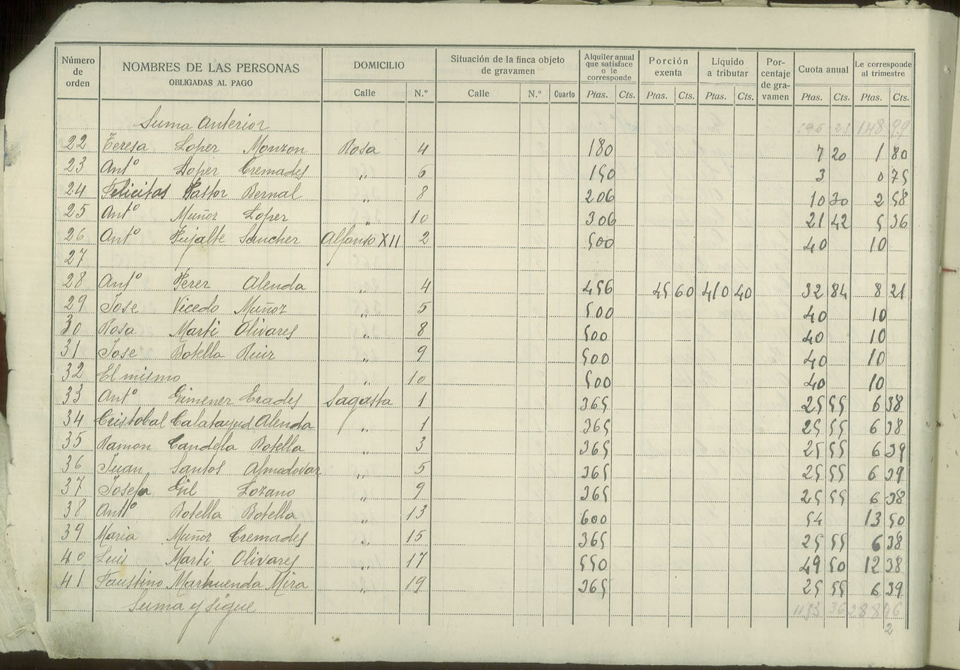 Padrón de personas sujetas al pago de arbitrio de inquilinato, 1927
