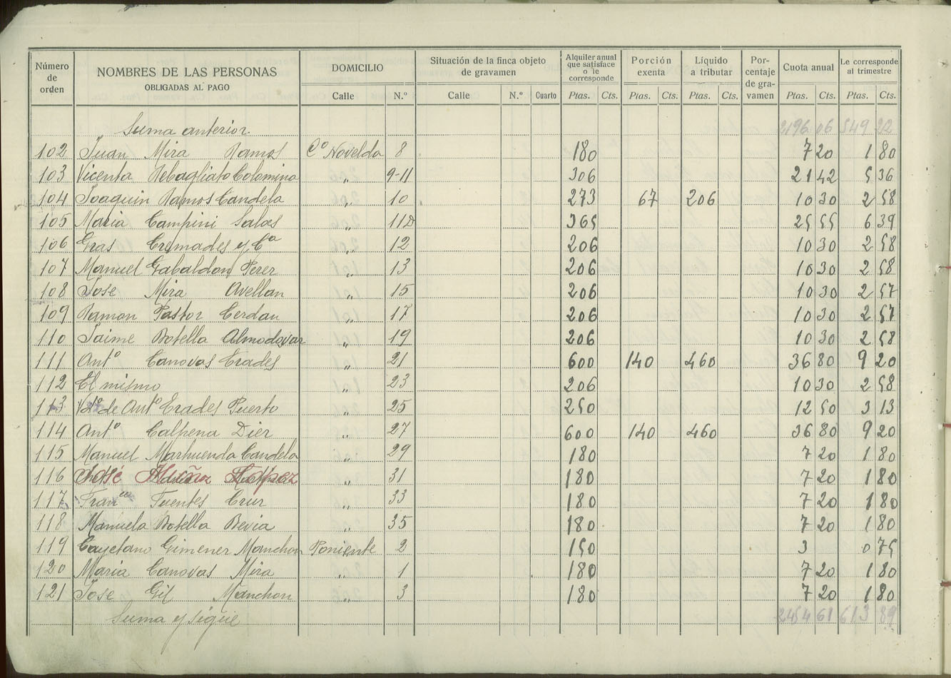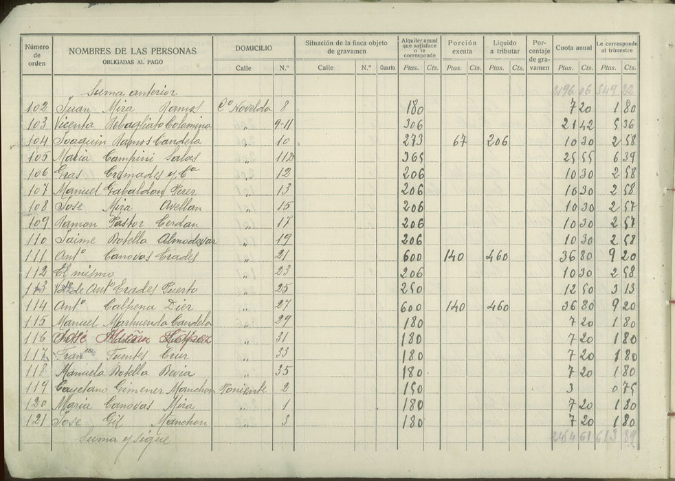 Padrón de personas sujetas al pago de arbitrio de inquilinato, 1927