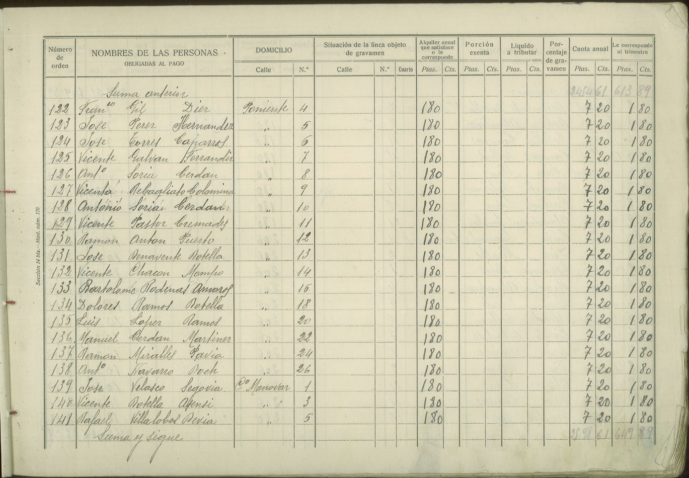 Padrón de personas sujetas al pago de arbitrio de inquilinato, 1927