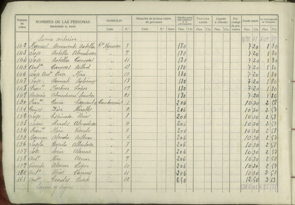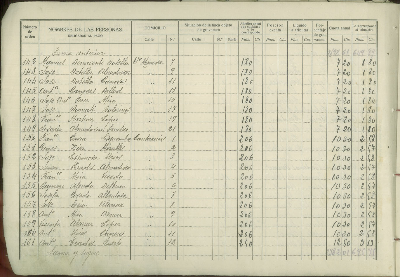 Padrón de personas sujetas al pago de arbitrio de inquilinato, 1927