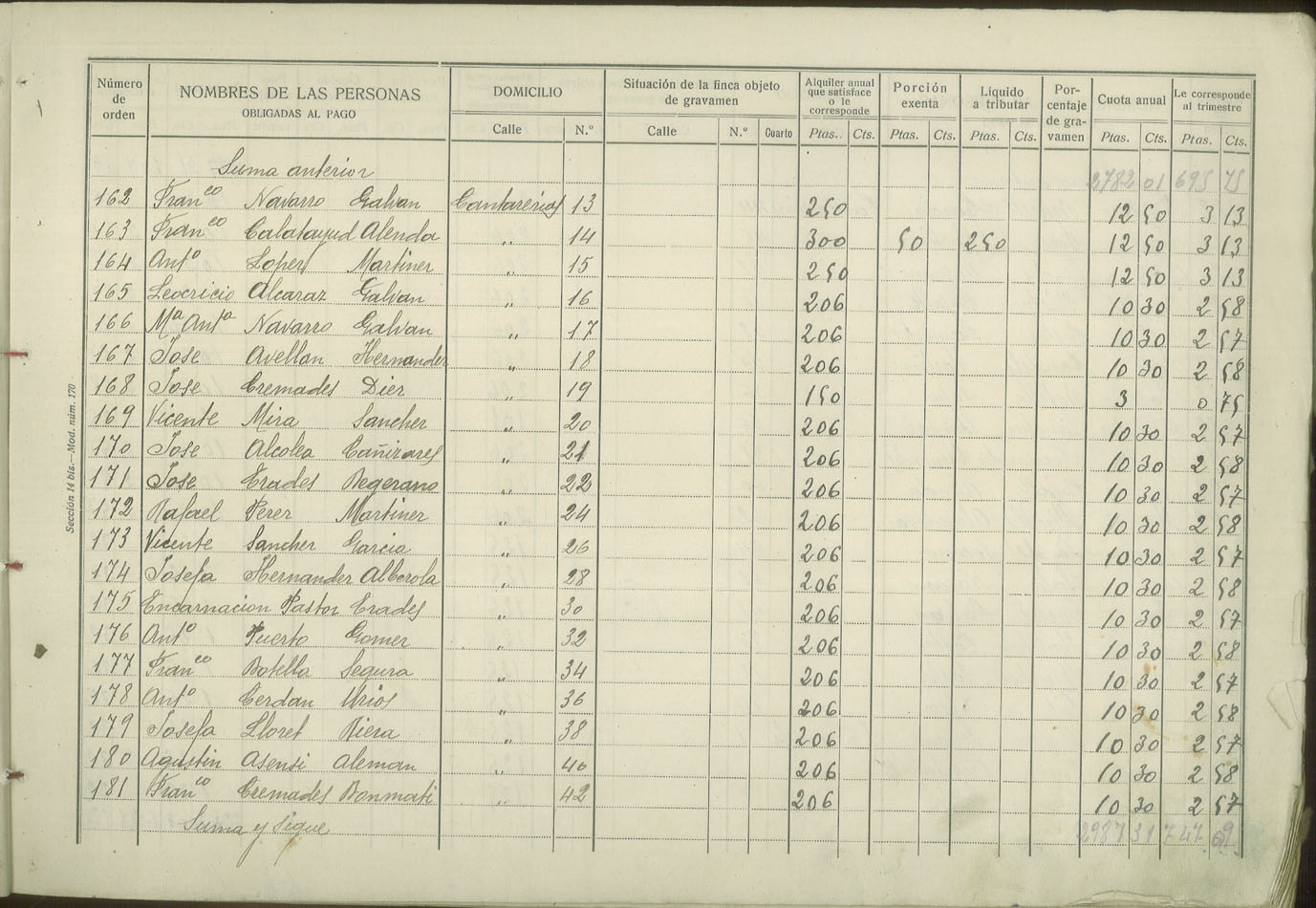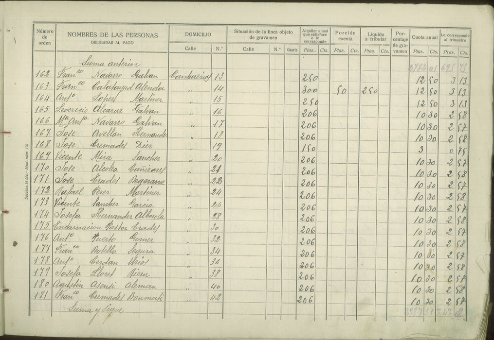 Padrón de personas sujetas al pago de arbitrio de inquilinato, 1927