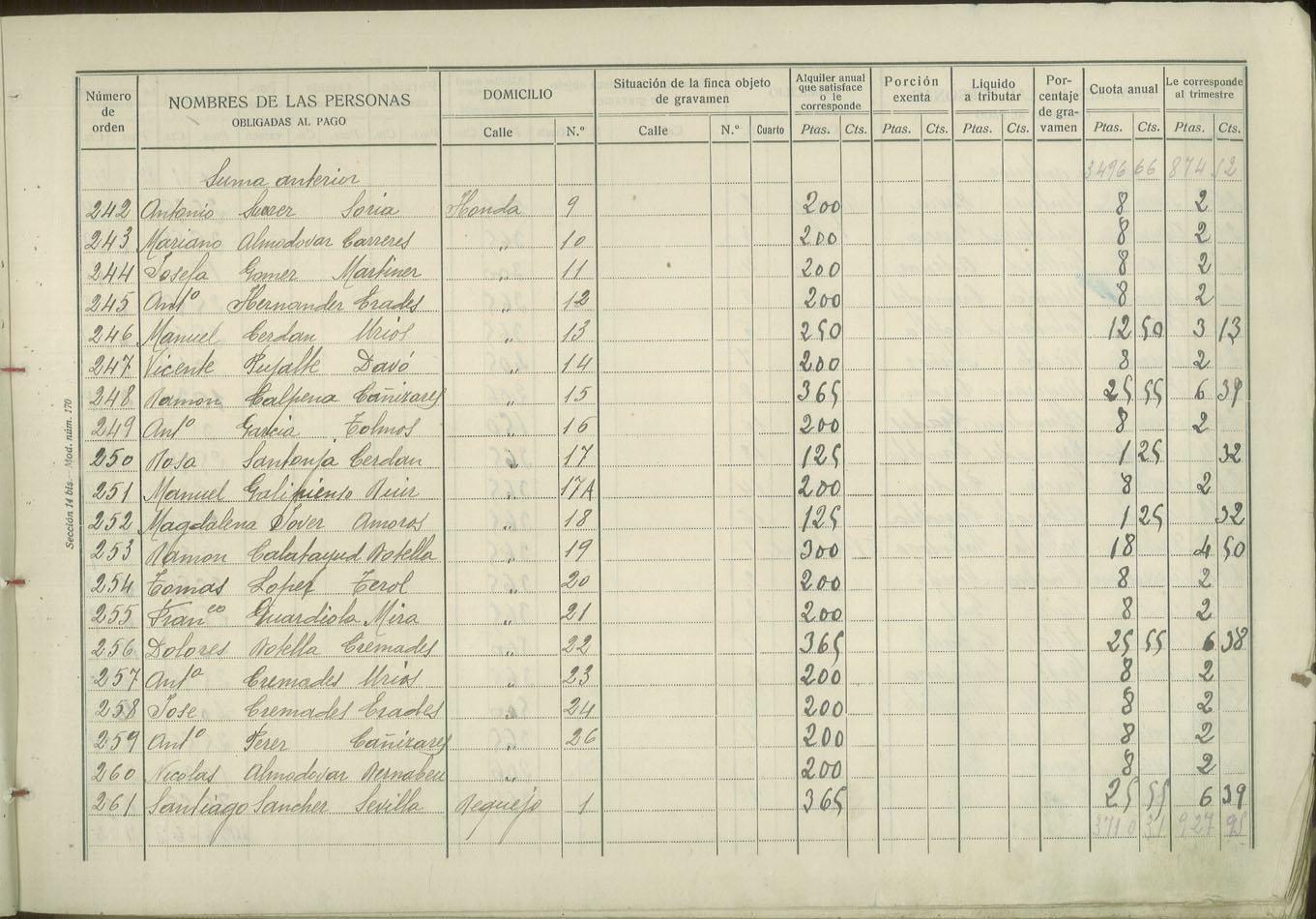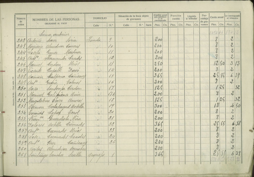 Padrón de personas sujetas al pago de arbitrio de inquilinato, 1927