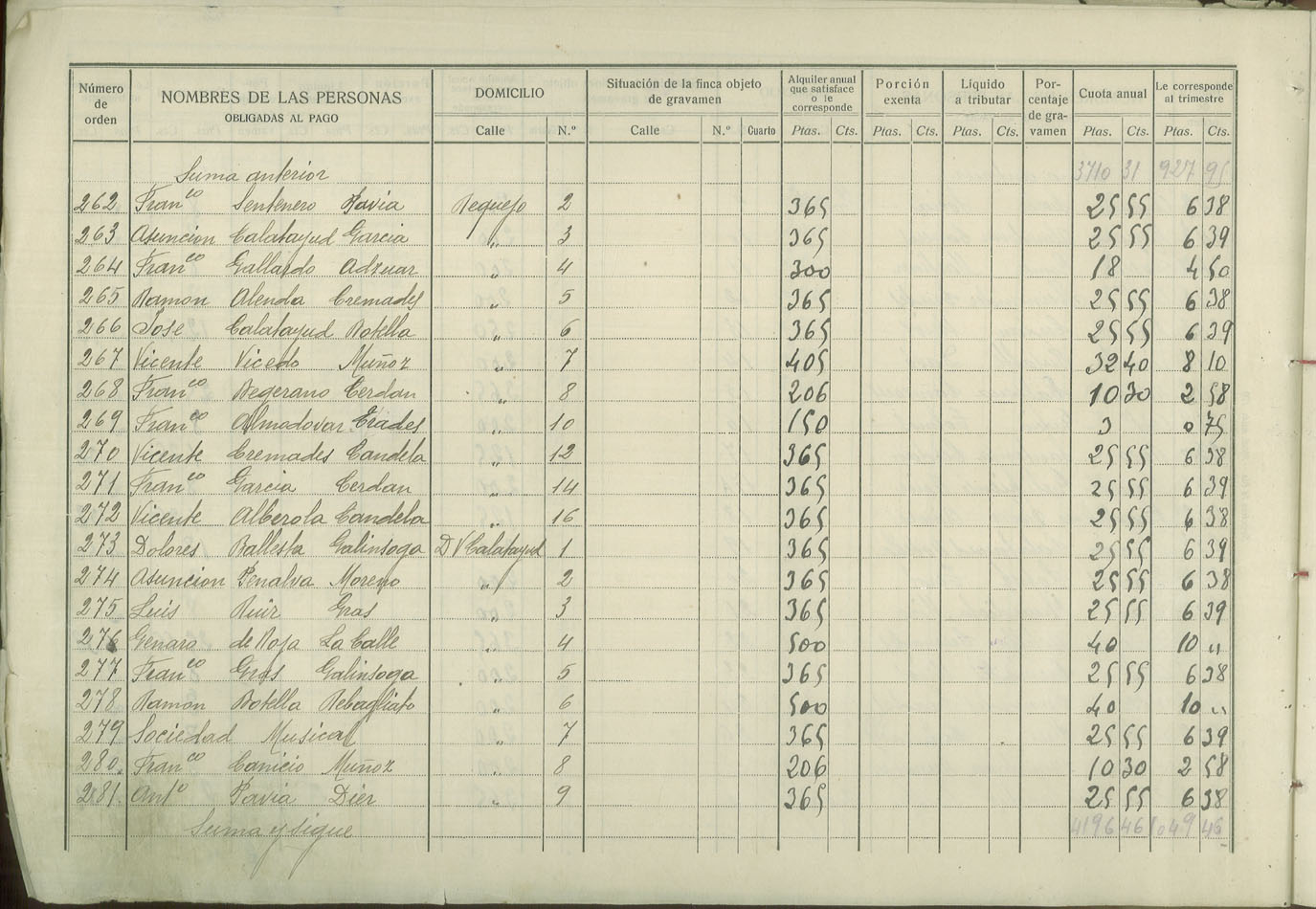 Padrón de personas sujetas al pago de arbitrio de inquilinato, 1927
