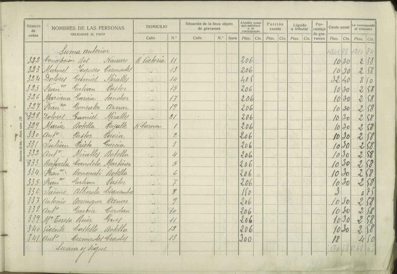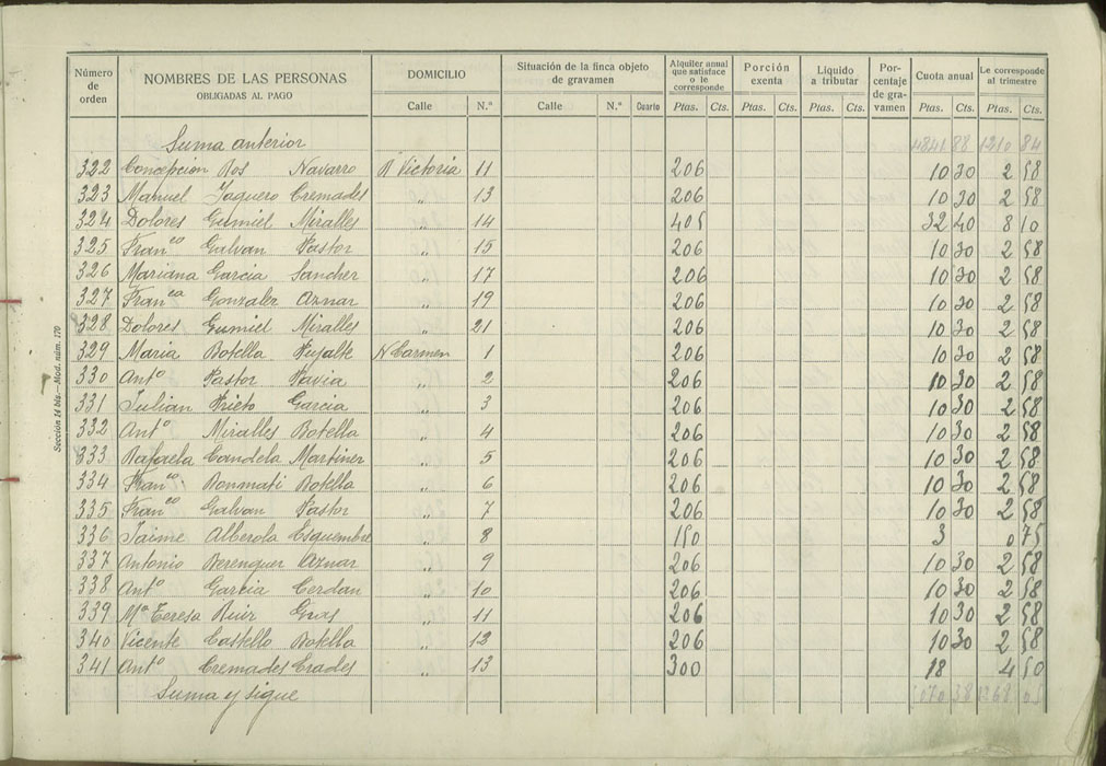 Padrón de personas sujetas al pago de arbitrio de inquilinato, 1927