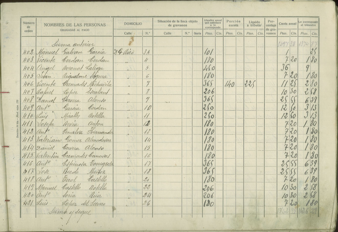 Padrón de personas sujetas al pago de arbitrio de inquilinato, 1927