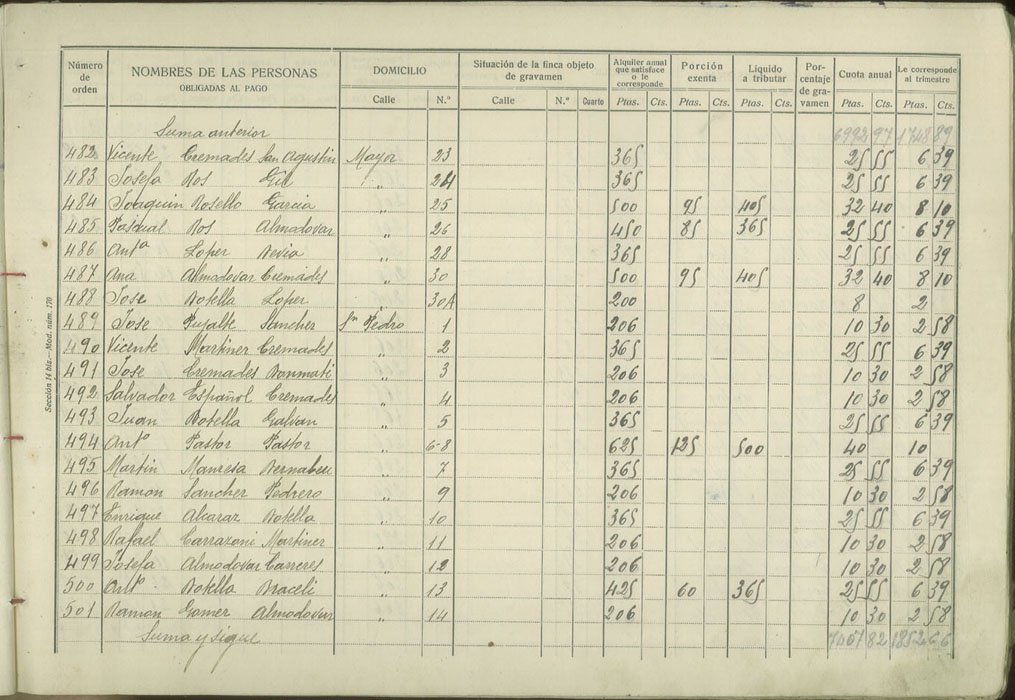 Padrón de personas sujetas al pago de arbitrio de inquilinato, 1927