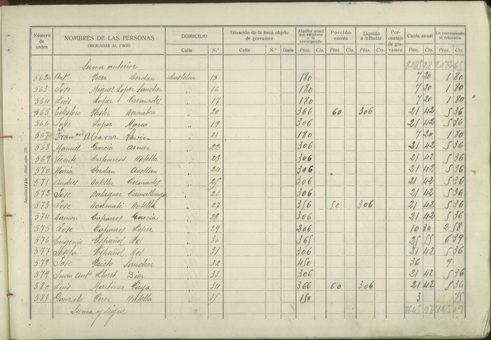 Padrón de personas sujetas al pago de arbitrio de inquilinato, 1927