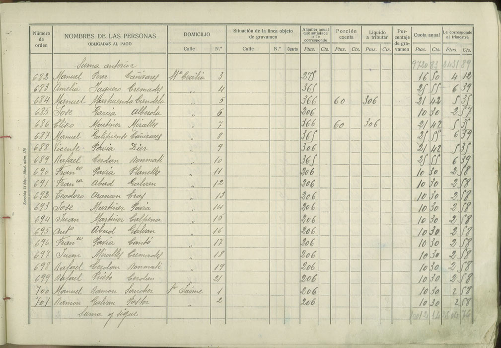 Padrón de personas sujetas al pago de arbitrio de inquilinato, 1927