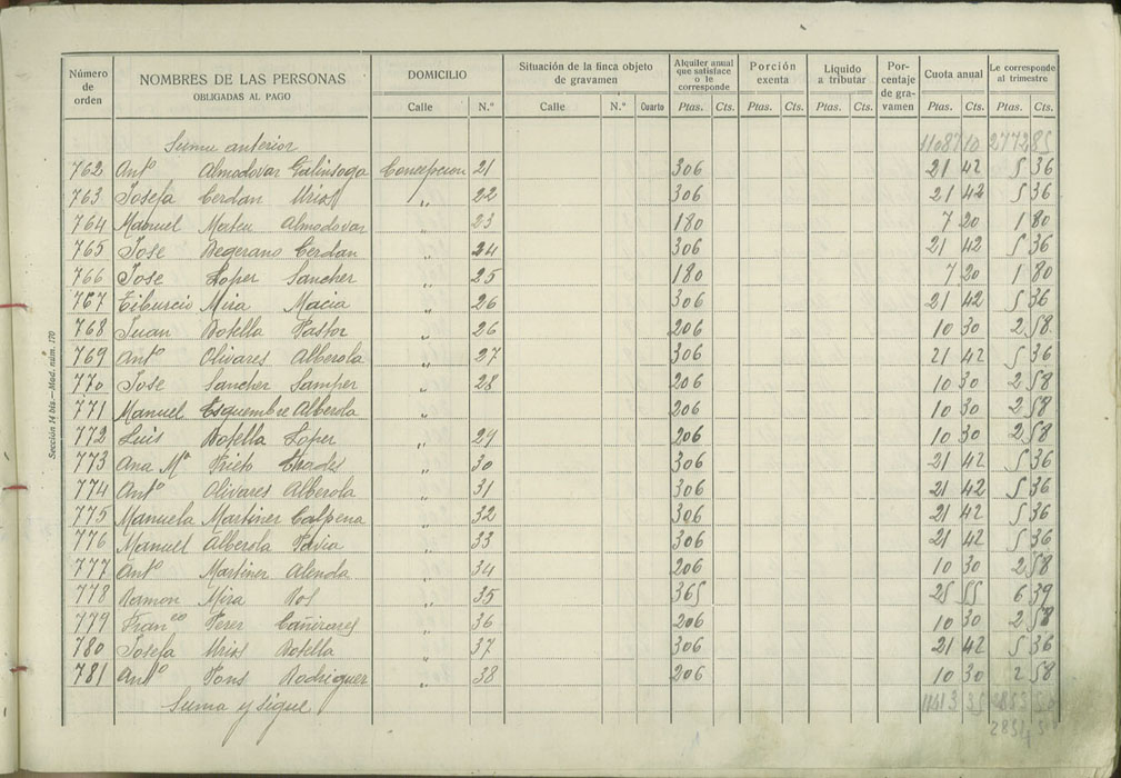 Padrón de personas sujetas al pago de arbitrio de inquilinato, 1927