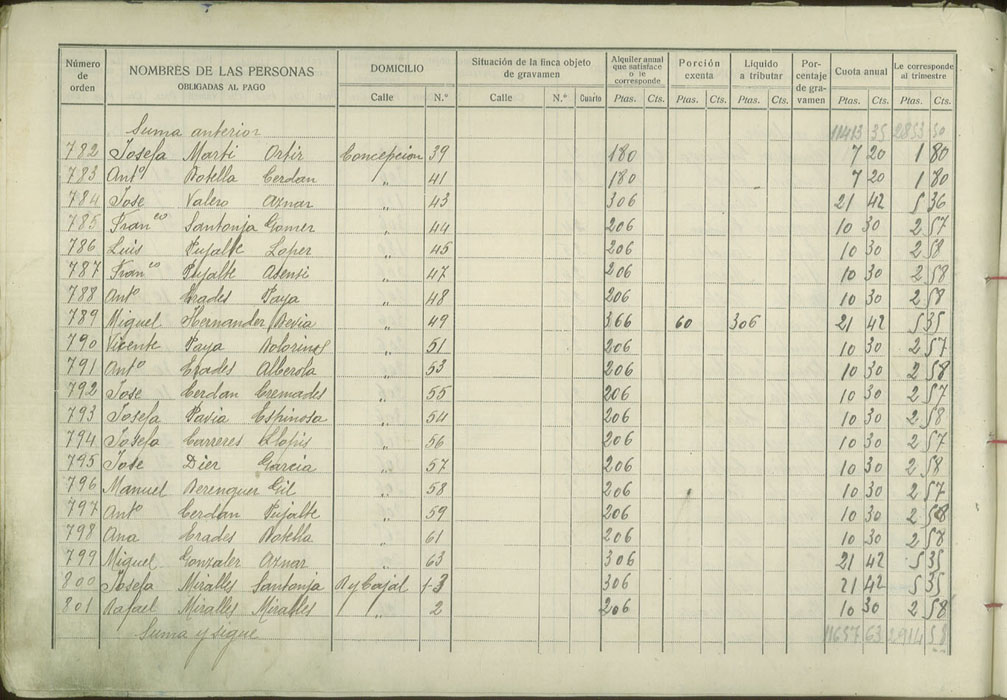 Padrón de personas sujetas al pago de arbitrio de inquilinato, 1927
