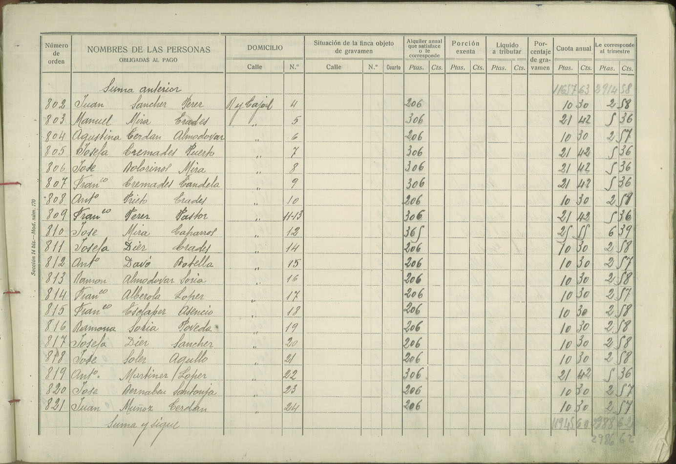 Padrón de personas sujetas al pago de arbitrio de inquilinato, 1927