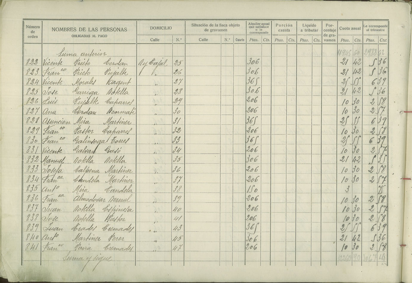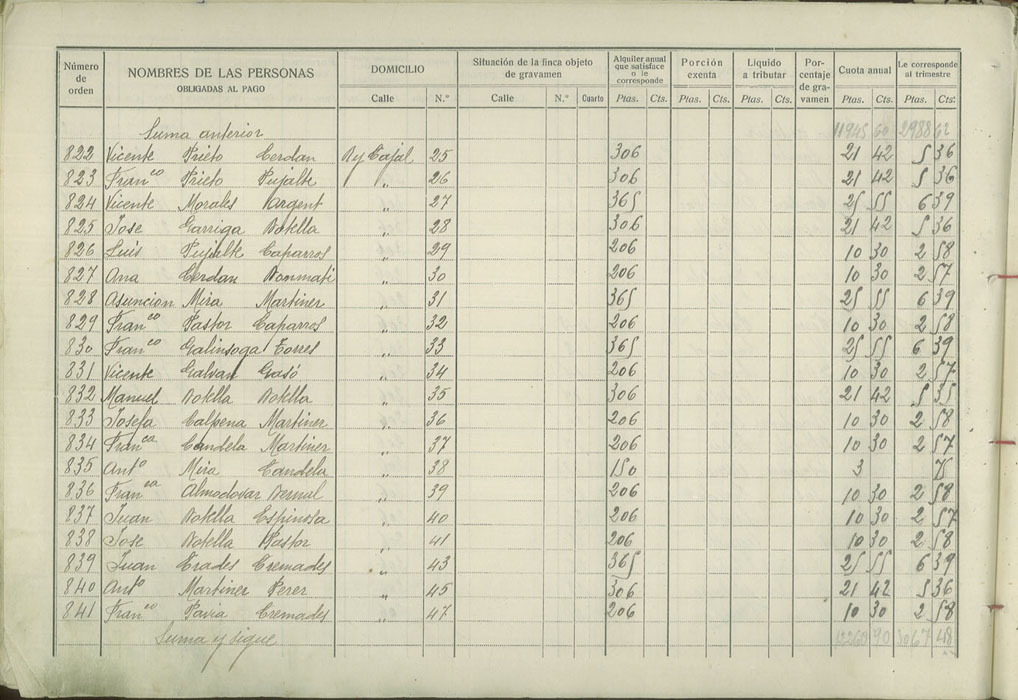 Padrón de personas sujetas al pago de arbitrio de inquilinato, 1927