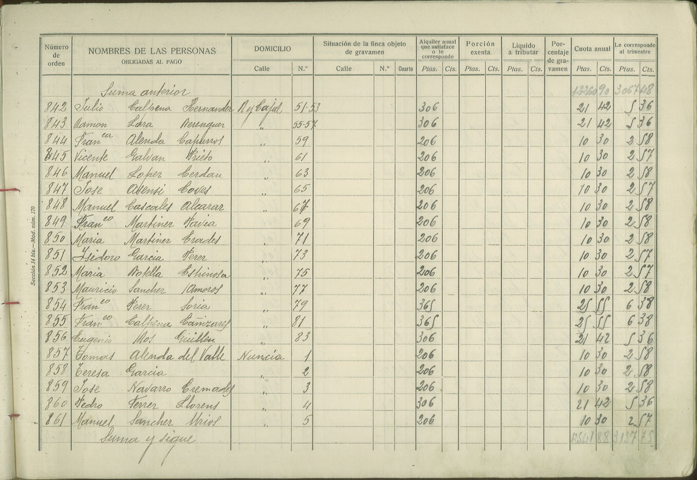 Padrón de personas sujetas al pago de arbitrio de inquilinato, 1927