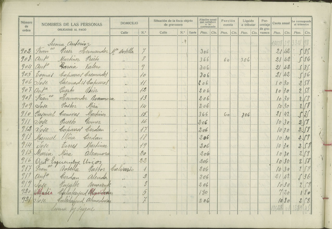 Padrón de personas sujetas al pago de arbitrio de inquilinato, 1927