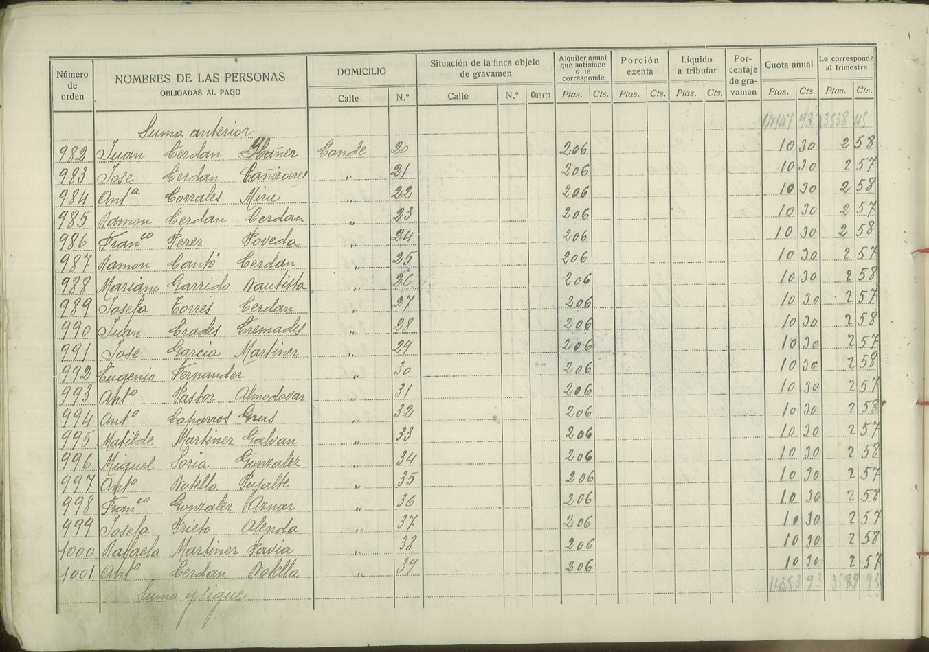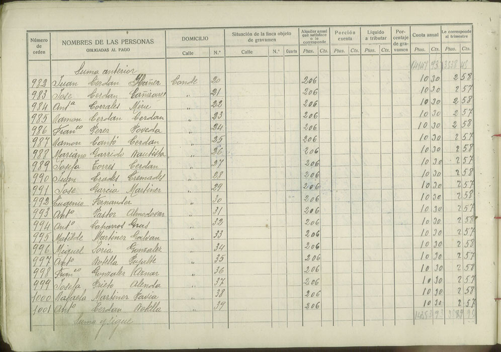 Padrón de personas sujetas al pago de arbitrio de inquilinato, 1927