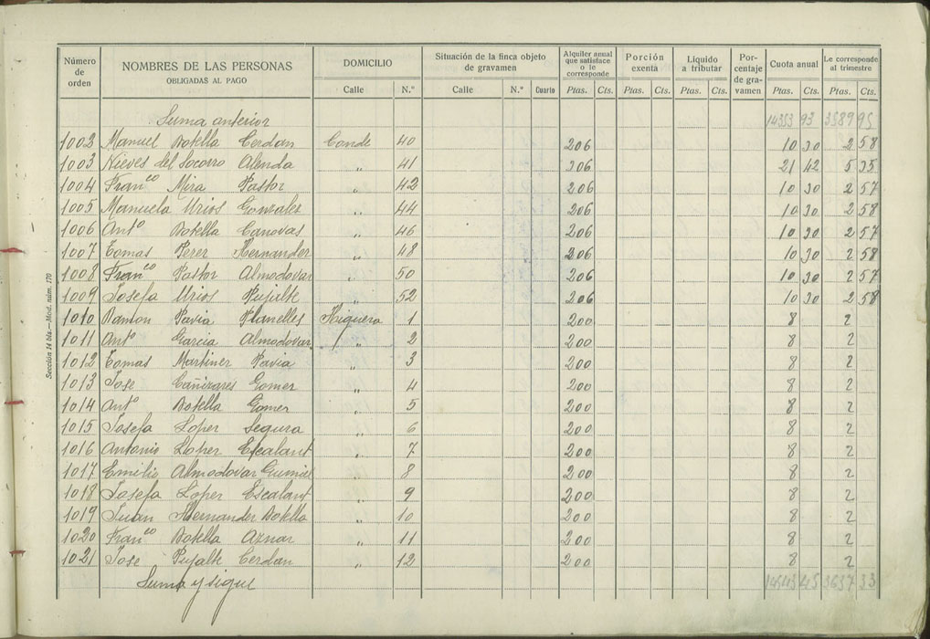 Padrón de personas sujetas al pago de arbitrio de inquilinato, 1927