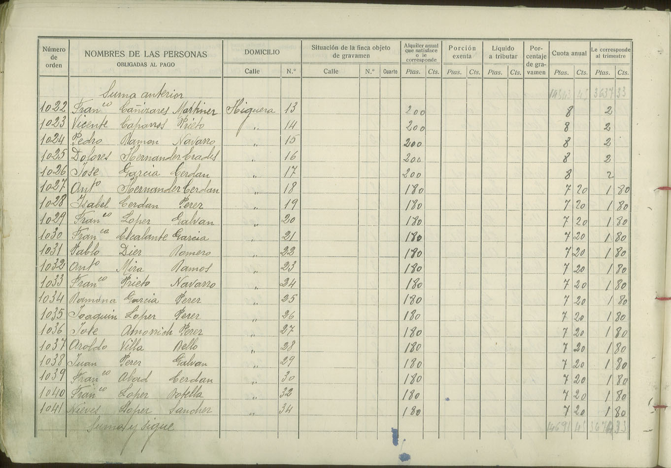 Padrón de personas sujetas al pago de arbitrio de inquilinato, 1927