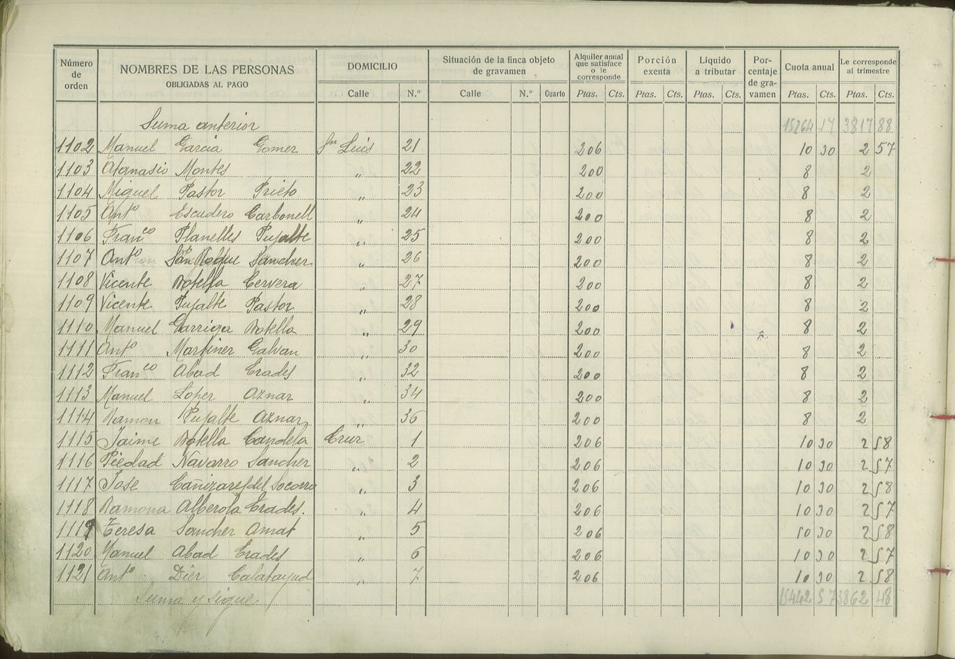 Padrón de personas sujetas al pago de arbitrio de inquilinato, 1927