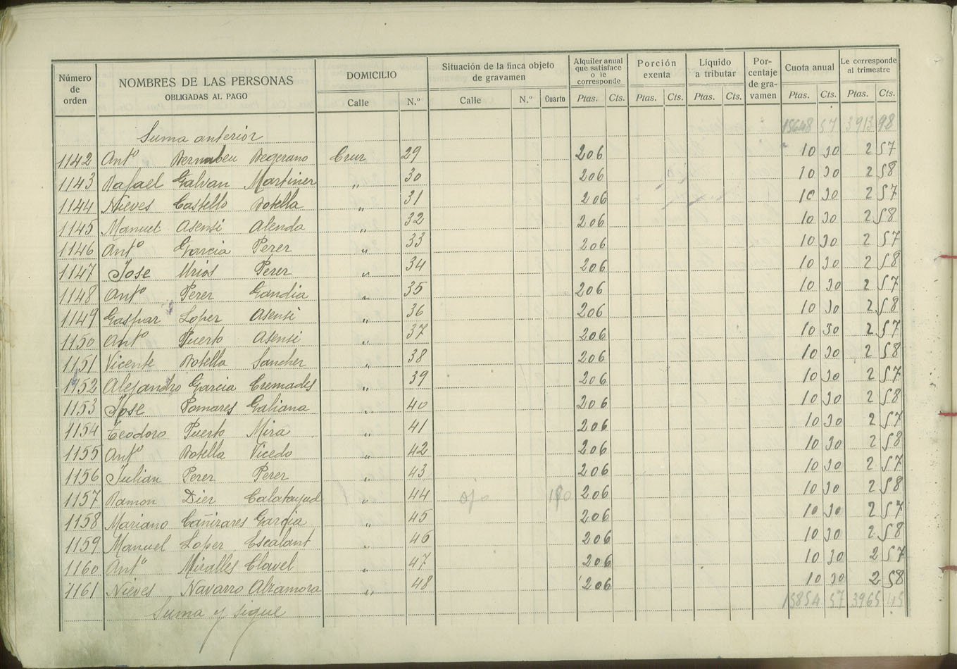 Padrón de personas sujetas al pago de arbitrio de inquilinato, 1927