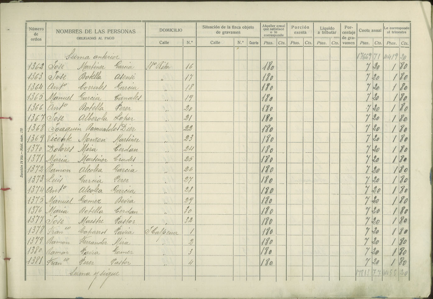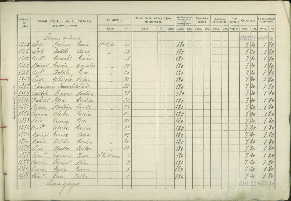 Padrón de personas sujetas al pago de arbitrio de inquilinato, 1927