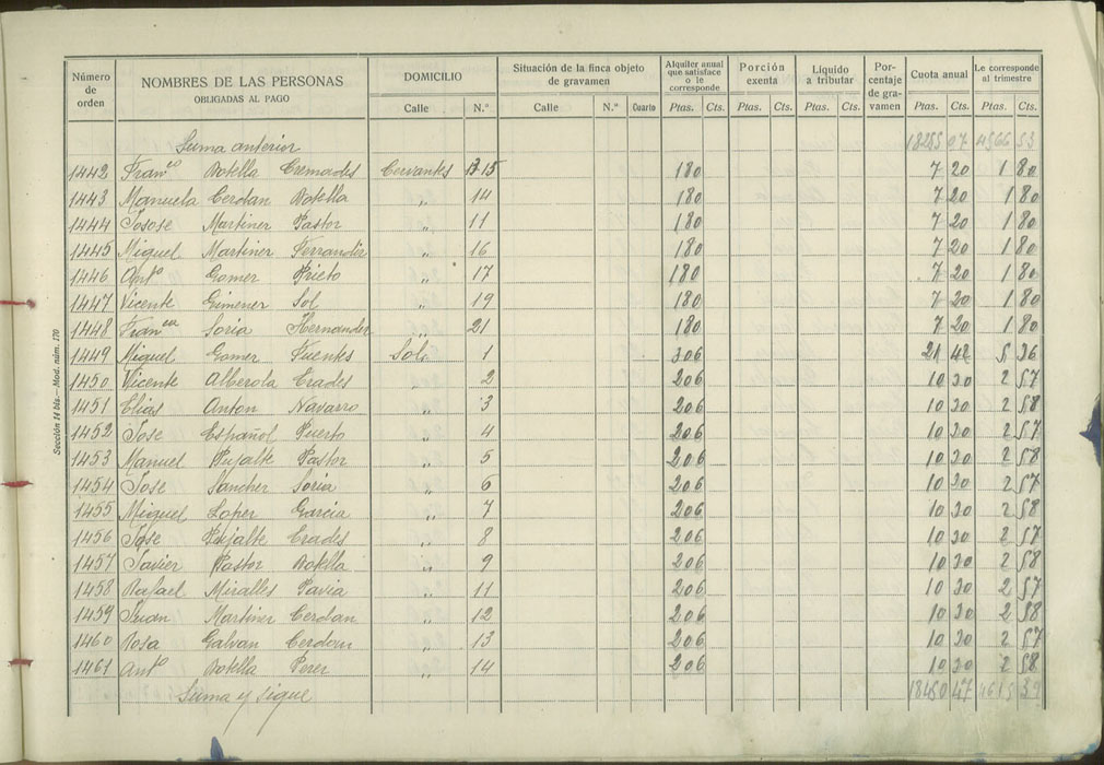 Padrón de personas sujetas al pago de arbitrio de inquilinato, 1927