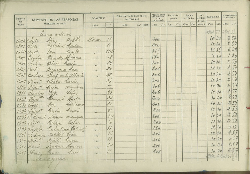 Padrón de personas sujetas al pago de arbitrio de inquilinato, 1927