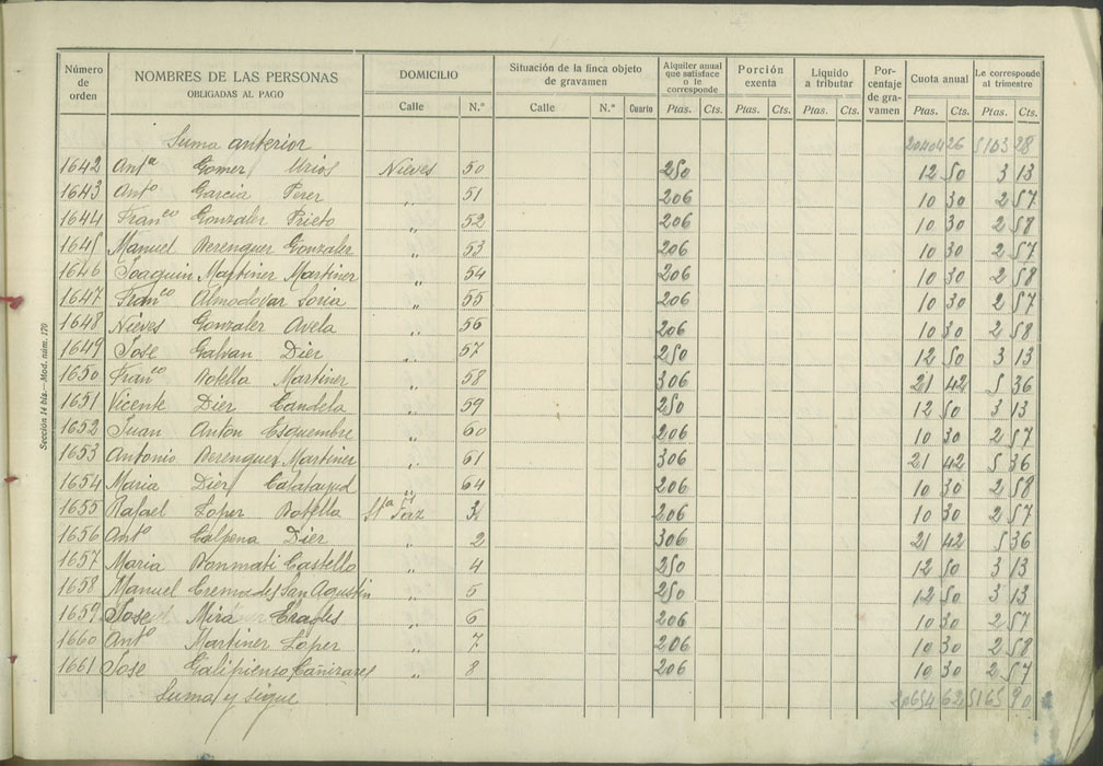 Padrón de personas sujetas al pago de arbitrio de inquilinato, 1927