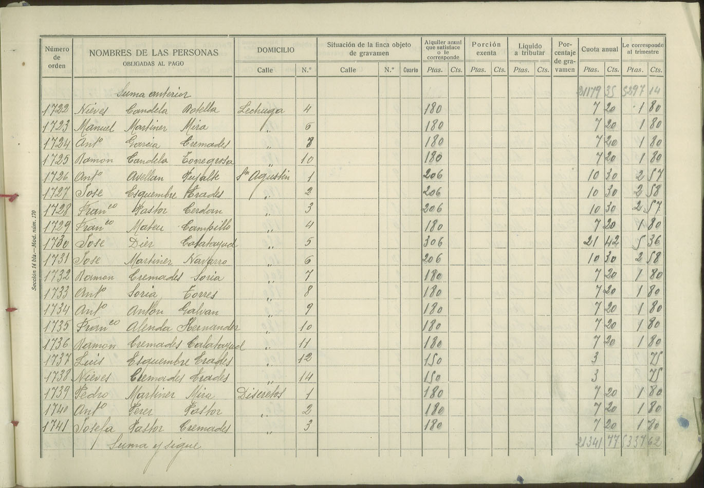 Padrón de personas sujetas al pago de arbitrio de inquilinato, 1927