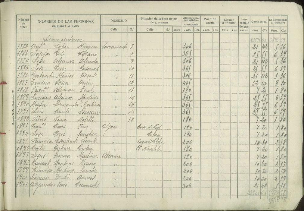 Padrón de personas sujetas al pago de arbitrio de inquilinato, 1927