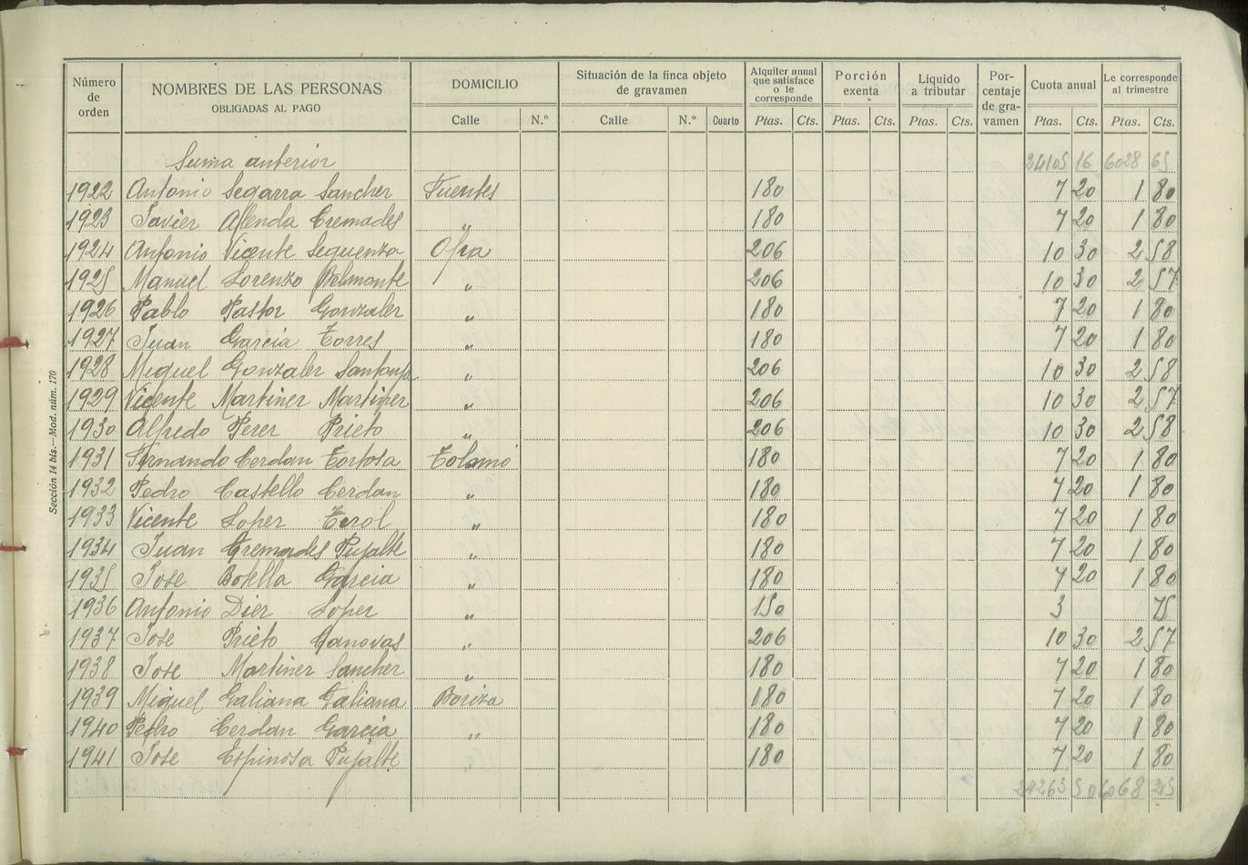 Padrón de personas sujetas al pago de arbitrio de inquilinato, 1927