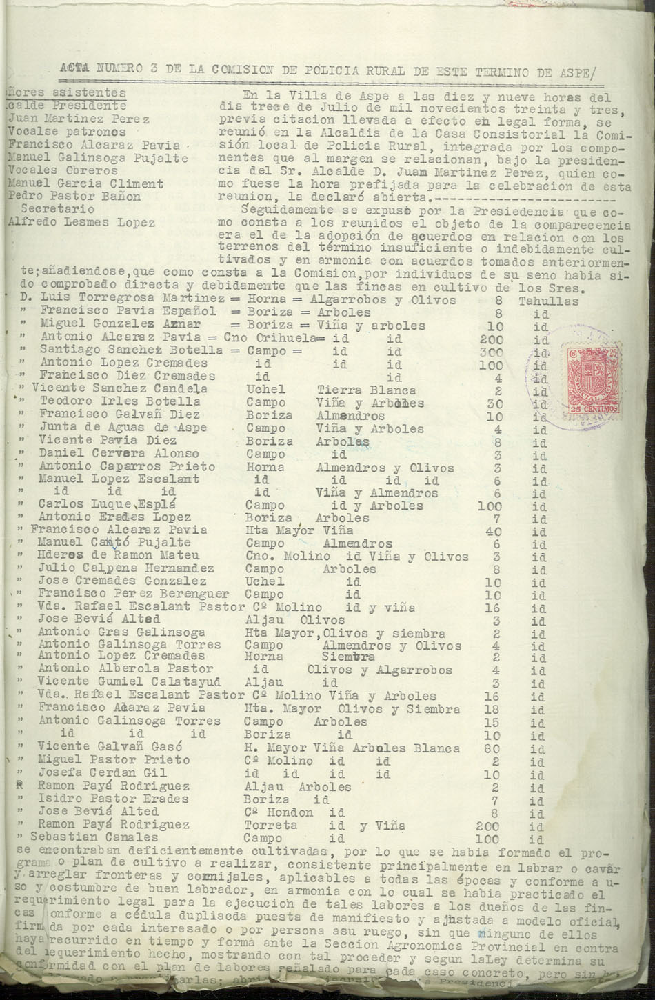 Actas y antecedentes de la Comisión de la Policía Rural, 1933