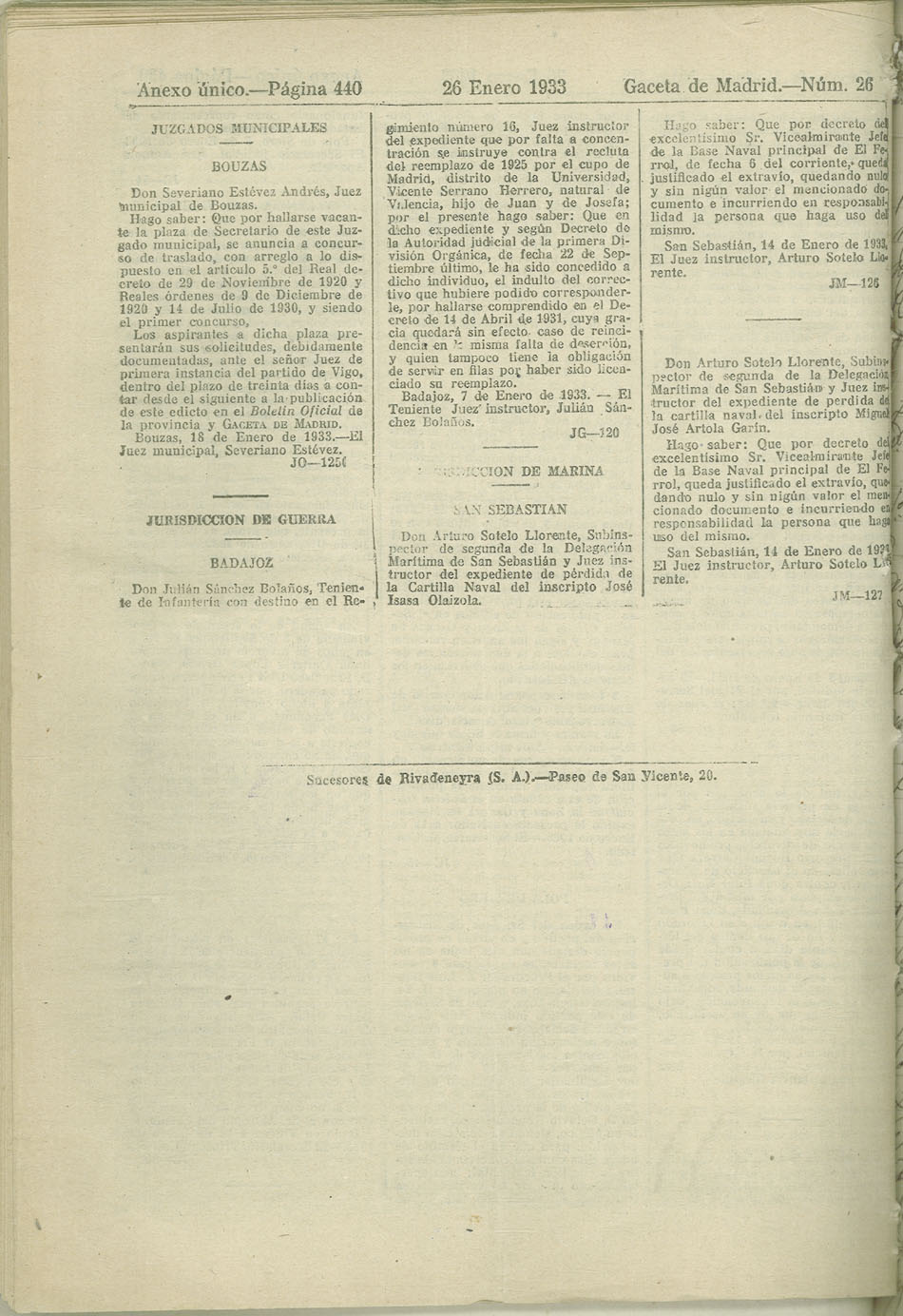 Actas y antecedentes de la Comisión de la Policía Rural, 1933
